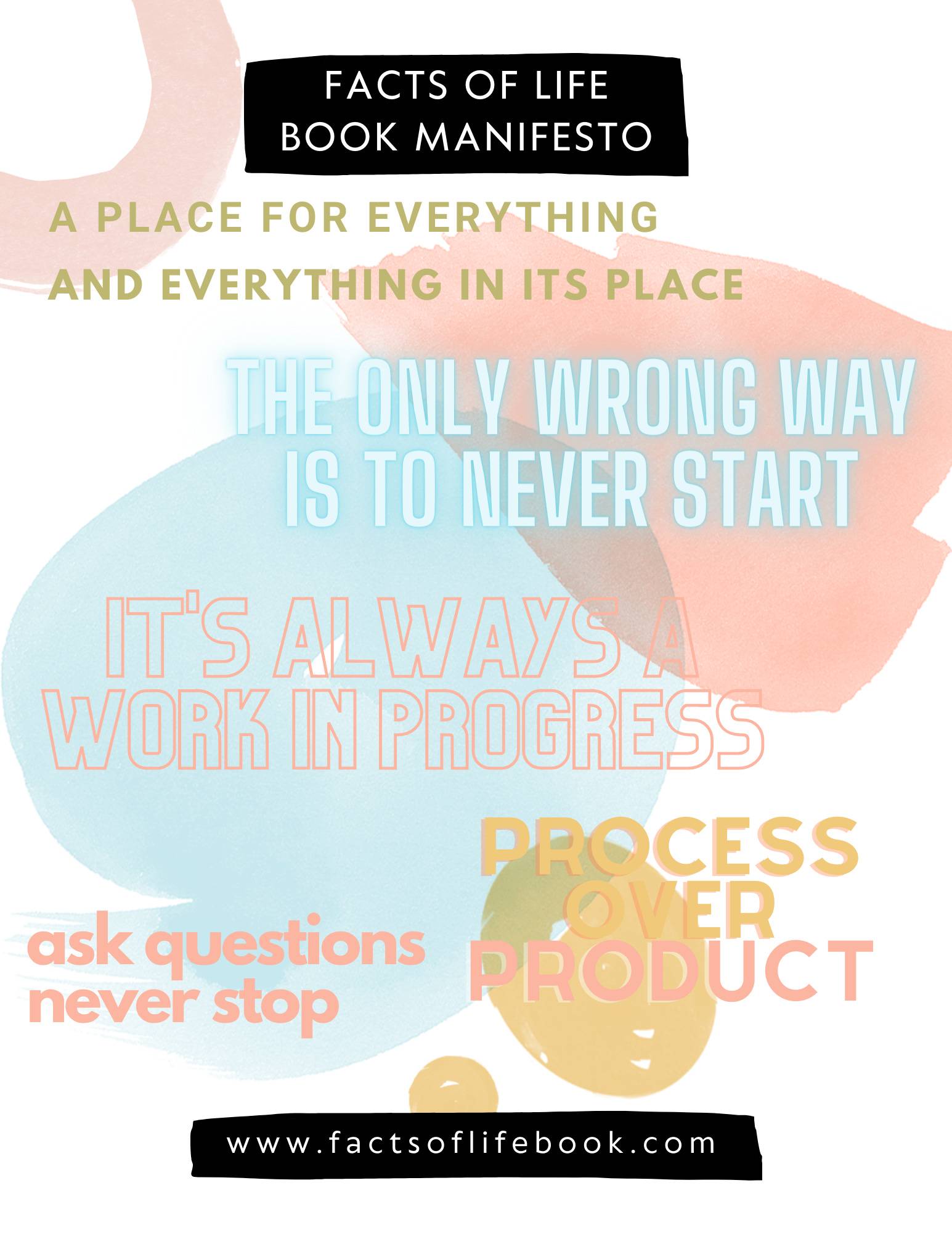When it comes to the second item on the manifesto - The Only Wrong Way Is To Never Start - I'm probably the wrong person to talk about this because starting has never been my problem. I LOVE ❤️ starting new things. I love the research and the organizing and the planning and the curiosity. For my learner brain that just loves to soak up new information, the starting is the easy part. Let's be honest, it's why I need to reboot the Facts of Life Book Course. I started it and then just kind of abandoned it. It needs love, nurturing, and care.